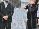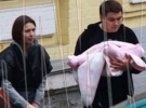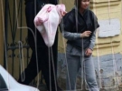 Варя была одета в розовый комбинезон. Ющенко бережно нес девочку на руках, постоянно улыбался дочери и что-то приговаривал.