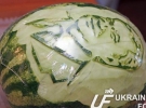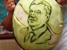 В Донецке специалист по декоративной резьбе на овощах и фруктах Яна Михайлова вырезала портрет Президента Виктора Януковича на арбузе.