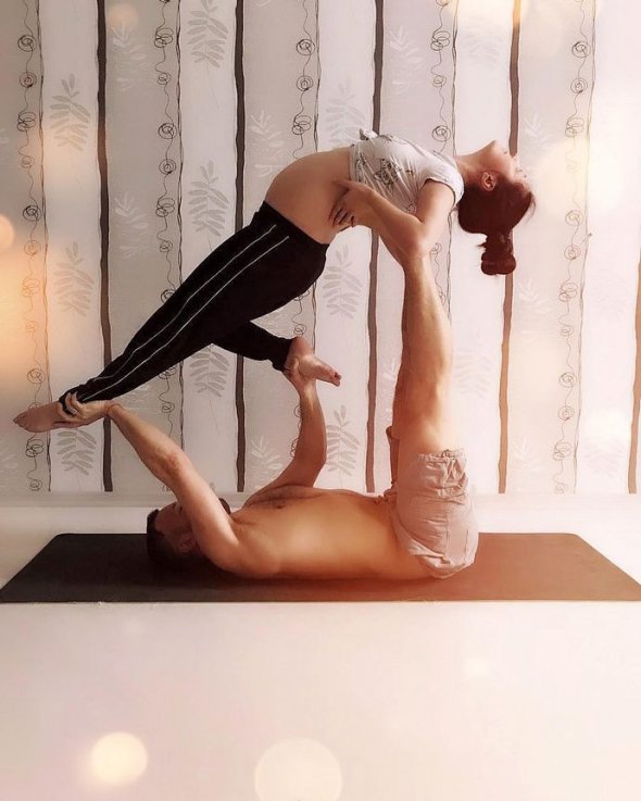 Жена певца Сергея Бабкина поделилась трогательным семейным фото на странице в Instagram. Пара продемонстрировала одну из асан йоги.