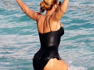 На фотографиях Бейонсе плескается в волнах, греется на солнышке рядом с мужем и старательно прикрывает попу руками, заметив объективы фотокамер. Примечательно, что, несмотря на все слухи о мнимой беременности, певица все же выбрала достаточно консервативный черный купальник с милой юбочкой, закрывающий живот актрисы. Злые языки тут же заявили, что Бейонсе скрывает растяжки.