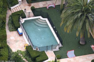 Имение насчитывает 6 спален, 9 ванных комнат, бассейн, библиотеку, медиа и музыкальную комнату. Обнесен стальным забором для дополнительного спокойствия.