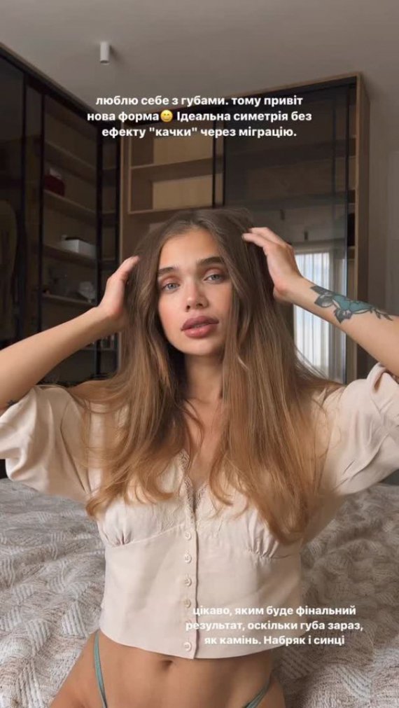 "Люблю себя с губами. Поэтому привет, новая форма. Идеальная симметрия без эффекта "утки" из-за миграции. Интересно, каким будет финальный результат? Поскольку губа сейчас, как камень. Отек и синяки", – рассказала подписчикам Бо.