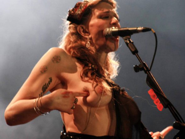 В 2011 году Кортни во время своего концерта в Сан-Паулу в Бразилии просто сдвинула свой топ в сторону и пальцем показала на свою обнаженную грудь.
