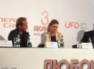 Новый фильм "Любовь в большом городе -3" презентовали столичной публике в среду. Из актеров фильма на презентацию приехали Владимир Зеленский, Настя Задорожная, режиссер Марюс Вайсберг, Вера Брежнева. Певица надела новенькие туфельки от Шанель. Из звезд фильм пришли посмотреть певица Мика Ньютон, пловчиха Яна Клочкова, дизайнер Андре Тан с женой.