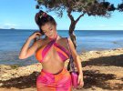 Модель отправилась на испанский курорт Ибица. Там демонстрирует пляжные наряды, что подчеркивают ее соблазнительные формы.