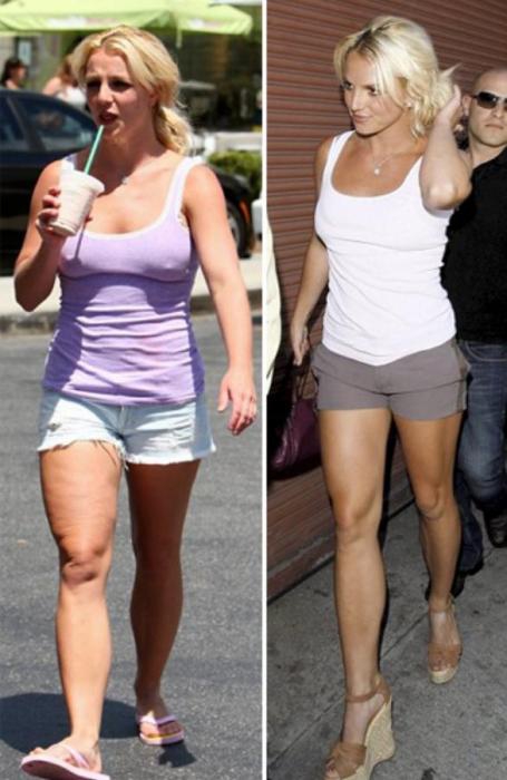 В коротких шортах и босоножках на высокой платформе Бритни выглядела очень свежо и подтянуто. Похудеть и привести себя в форму звездной блондинке удалось всего за две недели. Буквально в начале месяца она появилась на публике в растянутой майке, обвисших шортах и шлепанцах. А целлюлит на ногах звезды поверг в шок всех ее поклонников.