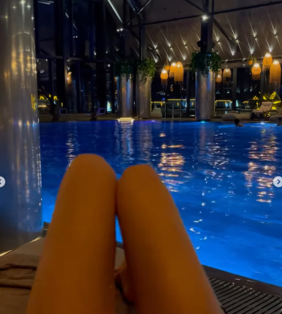 В своем Instagram женщина опубликовала кадры из спа, где показалась в купальнике с глубокими вырезами.