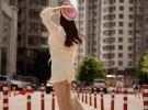 Перед камерой предстала в коротком комбинезоне, шляпе и трендовых босоножках.