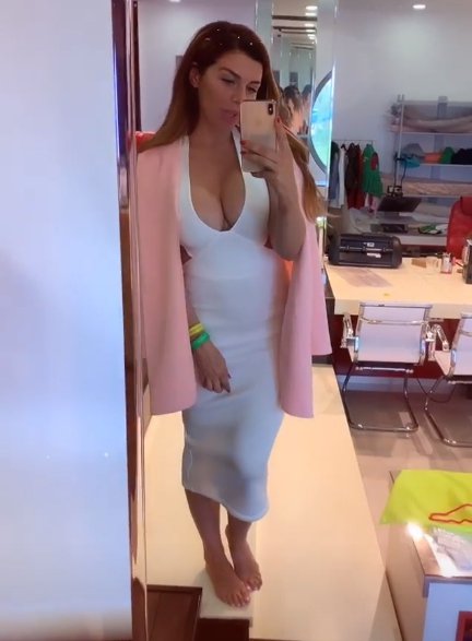 На втором снимке артистка - в белом обтягивающем платье с V-образным вырезом в зоне декольте.