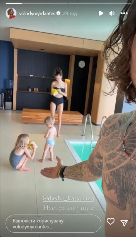 Помимо этого музыкант показал Кацурину в купальнике. Женщина позировала в черном бикини. Волосы собрала в высокий пучок.