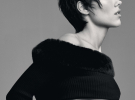 Аутфит дополнила париком с короткими темными волосами, минималистическими украшениями и контрастным макияжем.
