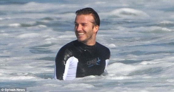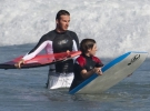 Последний "урок серфинга" от отца взял 12-летний Бруклин. Мужчины резвились на пляже у дома семейства в Малибу, где Дэвида с сыновьями нередко видят в последнее время.