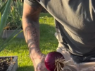 Мужчина показал лук, который вырастил сам. Видео, опубликованное в Instagram, снимала его жена Виктория.