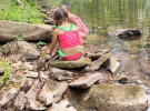 Вместе с девочкой Джиджи отдыхала у водоема. Кроме этого, показала, как она играет с животными в доме.
