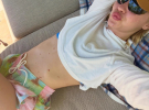 На остальных фото модель похвасталась стройной фигурой в шортах и коротком топе. Образ дополнила темными очками и бейсболкой.