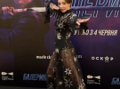 Для мероприятия звезда выбрала элегантный образ. Перед камерой предстала в черном прозрачном платье, под которое надела боди в тон.