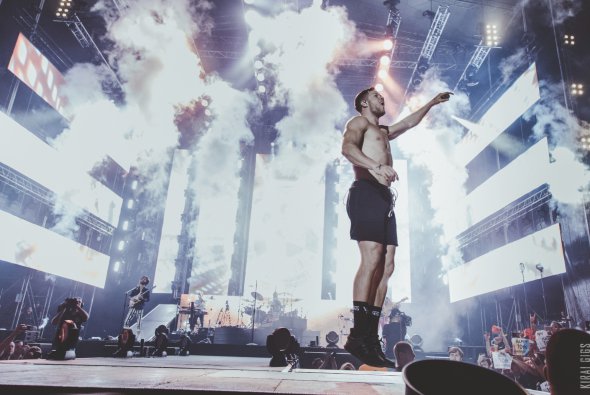 Концерт начался почти без задержки. После динамического разогрева британцев The Vaccines, которые исполнили 7 песен, на сцене зажгли, в полном смысле этого слова, Imagine Dragons.