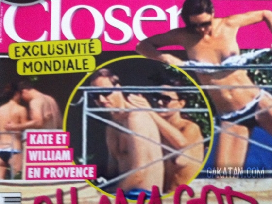 Французский светский журнал "Closer" опубликовал сегодня фотографии обнаженной герцогини. На обложке издания под надписью "мировой эксклюзив" размещены снимки супруги Уильяма, на которых она запечатлена топлес.