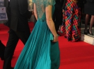 Она была в несравненном длинном бирюзовом платье от Дженни Пакхем, одной из ярчайших дизайнеров в этом сезоне. Платье, украшенное множеством блесток, подчеркивало стройность Кейт. Также 30-летней Кейт очень полюбились яркие босоножки на высоких каблуках от Джимми Чу.