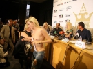 Активистка группы "FEMEN" 23-летняя Александра Шевченко пыталась сорвать пресс-конференцию с голливудскими звездами Пэрис Хилтон и Жан-Клодом Ван Даммом. Как только Пэрис стала отвечать на вопрос, девушка вышла перед журналистами, сорвала с себя майку и обнажила грудь.