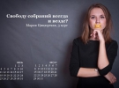 На календаре изображены шесть девушек, которые задают премьер-министру России острые политические вопросы. На фото каждая из студенток заклеила себе рот желтой лентой.