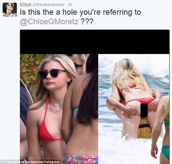 "Ты эту дыру имела в виду, Хлоя Морец?", - подписала Хлои фото девушки в бикини.