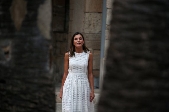 Летиция примерила котоновое платье из коллекции Dafalia от Hugo Boss, которое дополнила босоножками Сардиния от испанской марки Mint & Rose за $ 100.