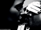 Новая фотосессия получилась очень личной: пока Ким закрывает глаза от удовольствия, Канье обнажает ее грудь и что-то страстно шепчет на ушко возлюбленной.