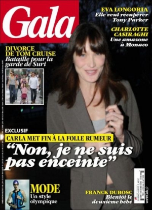 Бывшая первая леди Франции Карла Бруни-Саркози опровергла слухи о своей третьей беременности. Подобные сплетни несколько смутили 44-летнюю знаменитость и даже слегка раздосадовали. Причем настолько, что Карла решила дать опровержение через прессу.
