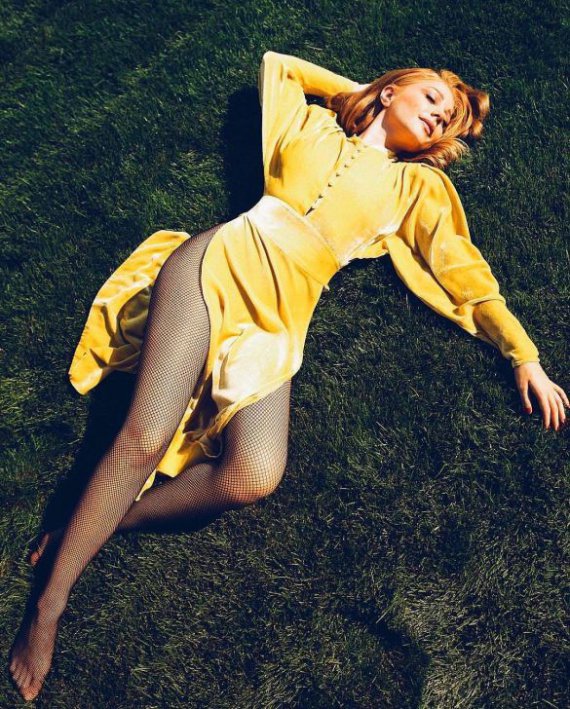 В сеть попала новая фотография Тины Кароль, на которой певица позирует в траве в ярком платье.