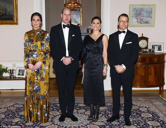 Кейт и Уильям прибыли в Швецию с двухдневным визитом. Днем их приветствовали королева Сильвия и король Карл XVI Густав, а также принц Даниэль и кронпринцесса Виктория.