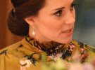 Герцогиня Кэтрин появилась на торжественном приеме в длинном платье Erdem горчичного цвета и с ярким цветочным принтом.