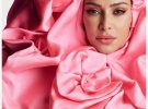 Во время фотосессии Кардашьян позировала в нескольких объемных платьях. На одном из снимков она примерила черную вуаль, которая прикрыла грудь. Сексуальный образ знаменитость воплотила в черном наряде, который подчеркнул пышный бюст.