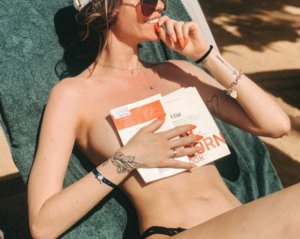 Обнаженную грудь девушка прикрывает книгой Джен Синсеро "Ни сы".