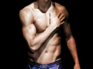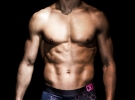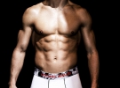 Чемпион позирует только в трусах, демонстрируя кубики пресса и накаченный ноги.