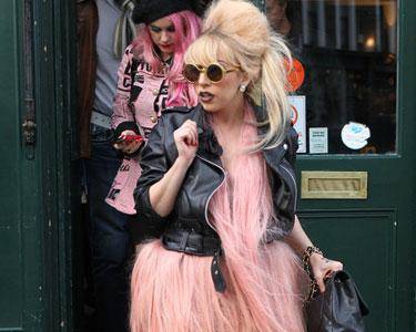 Эпатажную певицу Lady GaGa заметили в одном из пабов на востоке Лондона. При этом певица не собиралась оставаться не замеченной, поскольку была одета в розовое пушистое платье, черную кожаную куртку, рваные черные колготки. Образ завершали красный лак на ногтях и обувь на высоких каблуках, а также клатч от Chanel.
