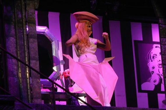 Во время концерта в Пуэрто-Рико певица также появилась перед публикой в белом платье без рукавов, а на голове у нее была странного вида круглая шляпа.