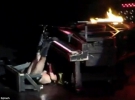 Леди Гага любит шокировать публику во время своих выступлений. Например, на нескольких шоу артистка имитировала падение на себя люстры, нападение маньяка или попросту появлялась, перемазанная искусственной кровью. Но на вчерашнем выступлении в Хьюстоне Гага чуть было не покалечилась по-настоящему.