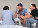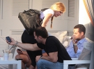 На импровизированном мальчишнике ДиКаприо по привычке не выпускал из рук мобильный телефон, но время от времени все же принимал участие в беседе. Правда, вскоре все его внимание привлекла досадная мелочь - кусочек еды застрял в зубах Лео, и он безуспешно пытался избавиться от него, строя смешные гримасы.
