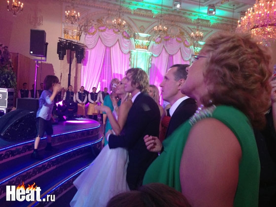 Новоиспеченных супругов поздравили Яна Рудковская и Евгений Плющенко, Наталья Подольская и Владимир Пресняков, Анна Семенович, Дима Билан, Дмитрий Маликов, Григорий Лепс, Михаил Галустян, Анастасия Волочкова, украинская звезда Светлана Лобода, Игорь Крутой, Леонид Агутин с Анжеликой Варум и многие другие. А почетными гостями стали Алла Пугачева и Максим Глакин. Вел мероприятие "золотой голос России" Николай Басков.