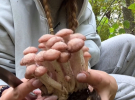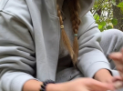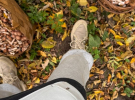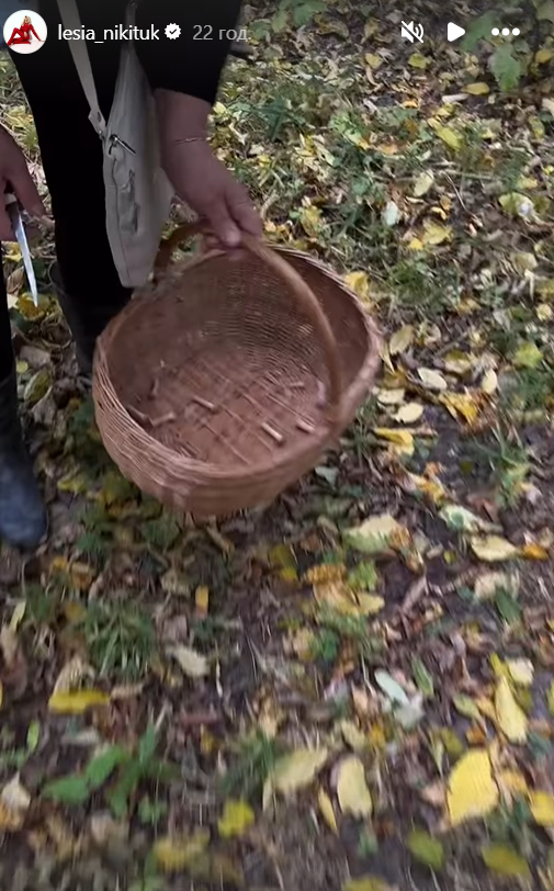 Вместе с родственниками она насобирала несколько корзин грибов. Для этого надела серый спортивный костюм и бежевые кроссовки.