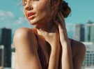 Хотя отдых уже давно позади, Елизавета делится ностальгией о нем на фотографиях. Девушка позирует на крыше небоскреба на фоне урбанистических пейзажей. На актрисе одет открытый бежевый топ-купальник и желтые короткие шорты. Собранные волосы девушки растрепались на ветру. Это создает у зрителей невероятное впечатление прикосновения свежего ветра к коже Лизы.