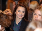 "О Боже, всего так много. Спасибо, Украина. Игрушки я обязательно заберу домой", - говорит со сцены и просит "айфон" у одного из гостей. Фотографирует себя с цветами и отдает назад. Зал взрывается бурными аплодисментами.