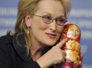 Между тем, весьма неформальным получилось общение голливудской звезды Мерил Стрип с журналистами на пресс-конференции. Пока она отвечала на вопросы, связанные с ролью Маргаретт Тэтчер в фильме "Железная леди", несколько корреспондентов сделали ей подарки. Среди них оказалась и русская матрёшка, причем с изображением самой актрисы.