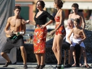 В течении дня актриса сменила несколько нарядов, среди которых вязанная крючком полупрозрачная юбка с вышитыми на ней синими ромашками. Каждый наряд Беллуччи подчеркивали красной помадой. 27-летняя Бьянка также несколько раз за день сменила наряд.