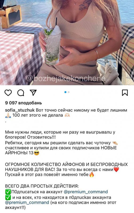 Инфлюэнсер в Instagram опубликовала розыгрыш, где предлагает подписаться на ряд российских блогеров и получить за это подарки.