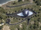 Знаменитая британская супермодель Наоми Кэмпбелл построила на одном из островков Турции экологичное жилище. С высоты птичьего полета видно, что дом повторяет своими очертаниями древнеегипетский символ Уаджет (глаз Гора).