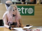 Певица на газетной летучке появилась в панковской косухе и с высоким начесом – прической "осиное гнездо". Говорила она все больше о духовном, о том, что сама проповедует в песнях — толерантности, равноправии и солидарности. Любимица публики призвала журналистов уделять этим вечным ценностям больше внимания в своих статьях.