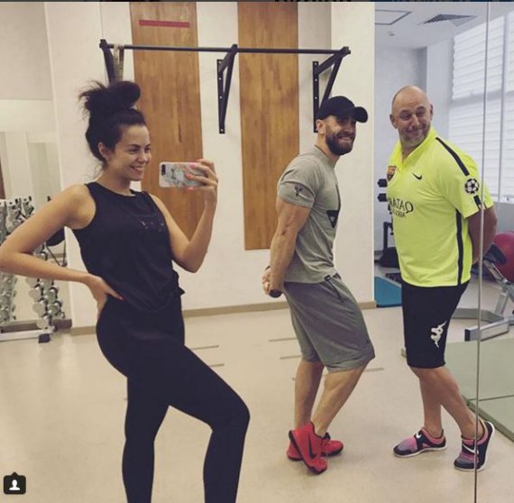 Певица Настя Каменских поделилась фото с тренировки, на котором позирует вместе с тренером и продюсером Потапом.