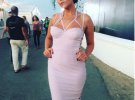 Для выхода на церемонии Каменских предпочла приталенное платье пудрового цвета с пикантными прорезями по обе стороны от груди до коленок.